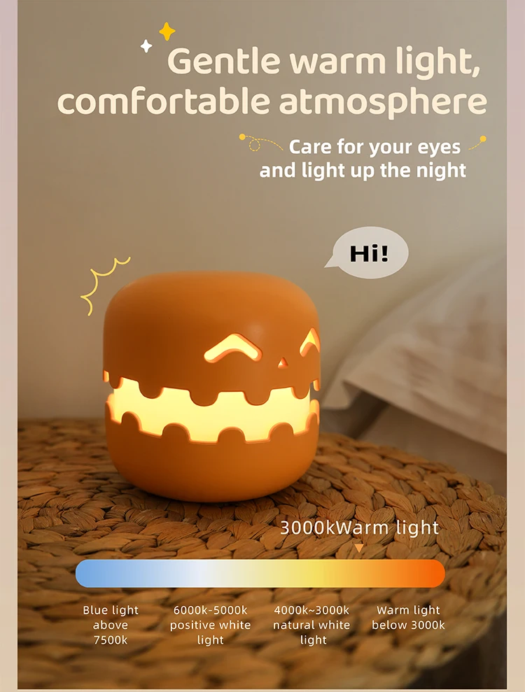 Night Lights Cartoon Ghost Face Bedside Light Halloween Decor Cute Room Rechargeable Lamp For Kids Room Bedroom Decoration