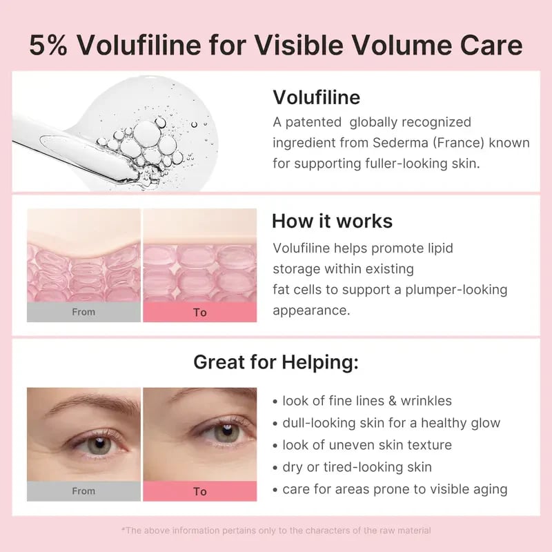 It helps improve areas of skin lack of plumpness, fine lines, and dryness, while leaving the skin smoother and more radiant.