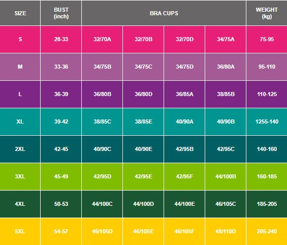 • Size: S, M, L, XL, 2XL, 3XL, 4XL,5XL (Cup Size A-I Available)