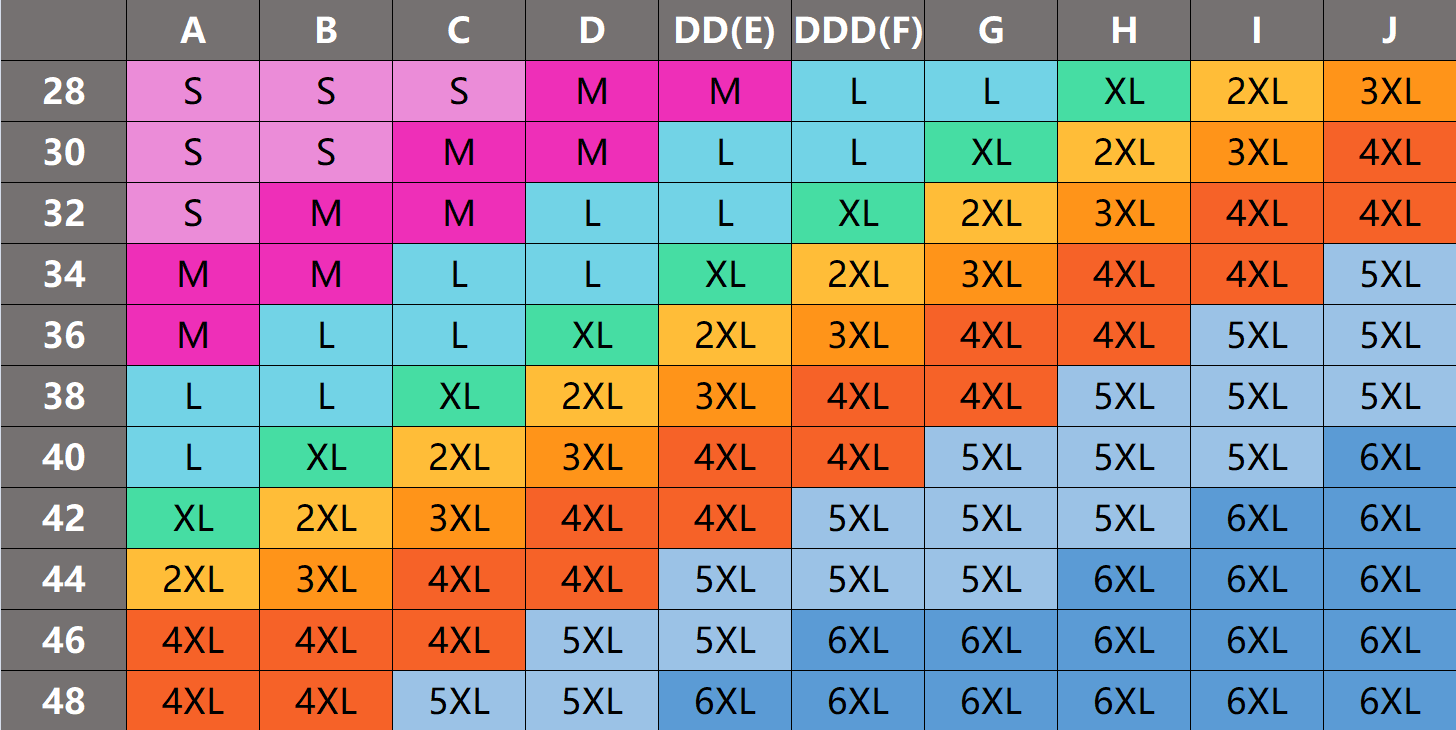 • Sizes: S, M, L, XL, XXL, 3XL, 4XL, 5XL, 6XL (fits for 28A to 48J)